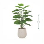تأتي داخل مركن خوص فاخر يعكس الرقي والأناقة، مدعّم بطبقة من الأحجار الصناعية المثبتة بعناية لتعزز الواقعية وتعطي إحساسًا بالحيوية.